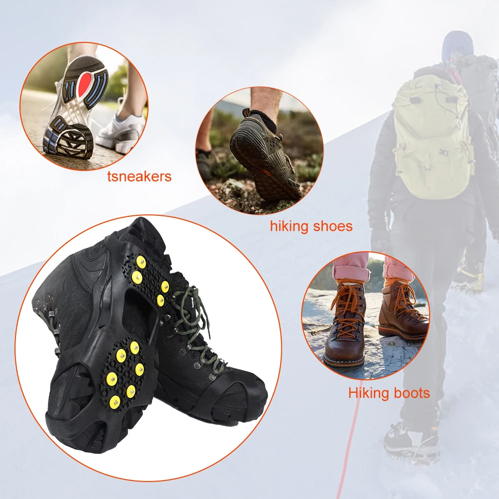 - Versatile indoors and outdoors—you'll have better grip on ice, grass, or mud; ideal for seniors, kids, and anyone navigating slick paths, with compatibility for your sports shoes, winter boots, or hiking footwear.