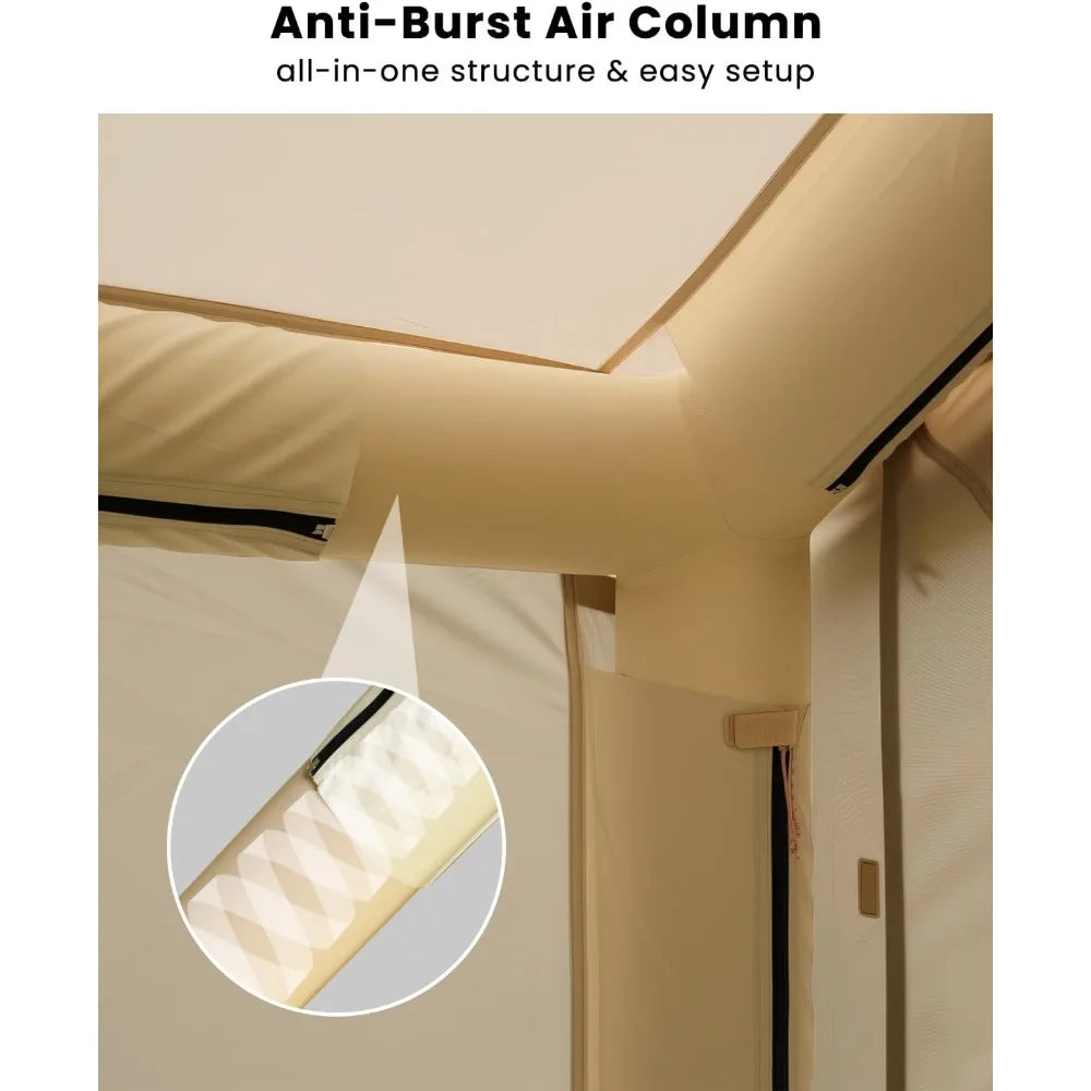 Designed for effortless setup and maximum convenience, this inflatable tent inflates in about 5 minutes with a high-efficiency air pump, delivering quick, hassle-free sheltering even for first-time campers. Its pole-free design means fewer moving parts and more time enjoying the outdoors.