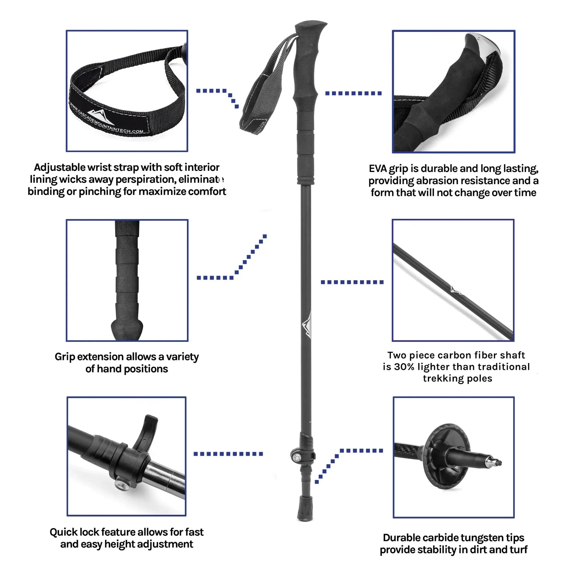 - Fully adjustable: Extendable from 30in to 52in to suit your height, terrain, and preferred trekking stance.